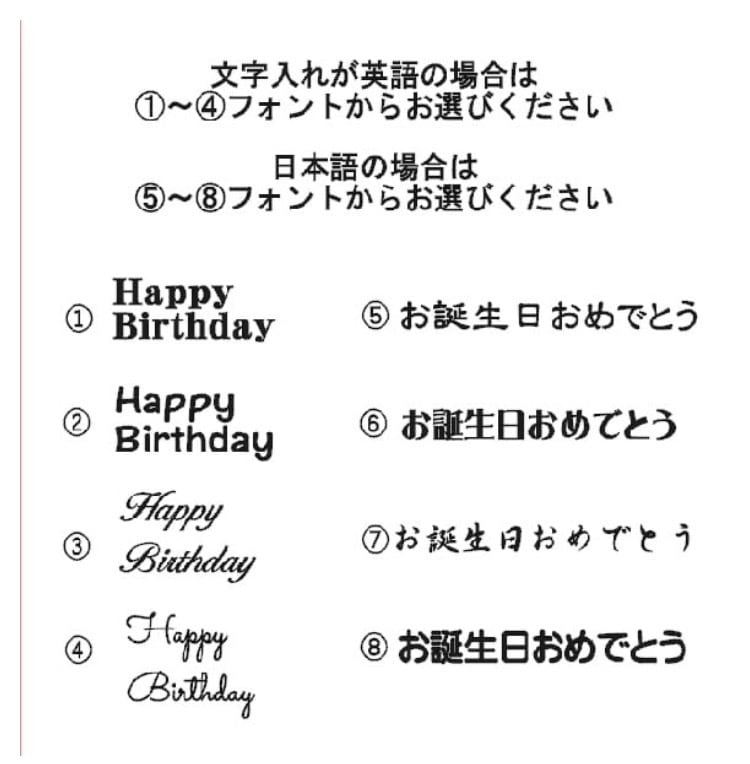 ご希望のフォントがある方は購入の際、備考欄に番号にてお知らせ下さい。