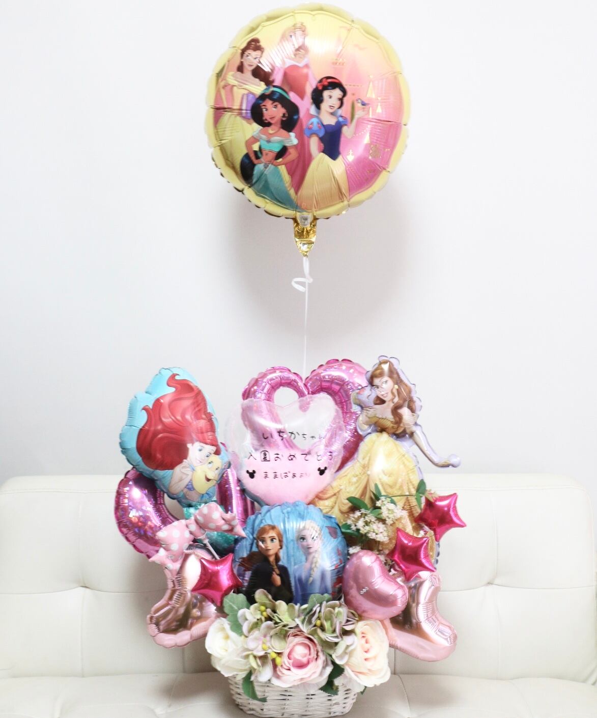 女の子が大好きなプリンセスのアレンジにぷかぷかバルーン1個が付きます。