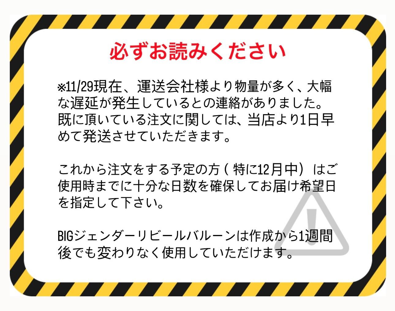 過去に運送引き継ぎミス等で1日到着が遅れるなどの案件が発生しておりますのでご使用日を到着希望日にする事は避けて下さい。