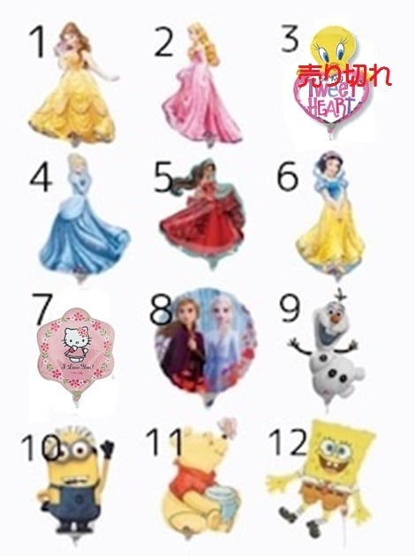 キティなどのガス浮きバルーンを希望の方は別ページより同時購入して下さい。