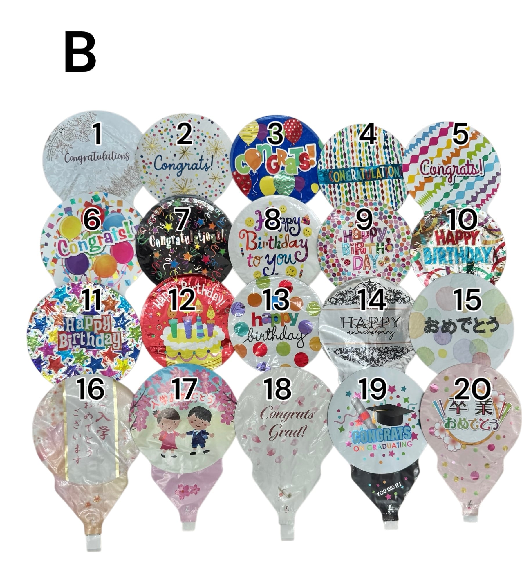 どんなお祝いにも合う様、中央バルーンをお選び頂けます。